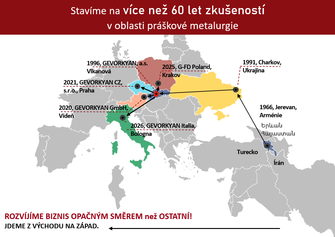 GEVORKYAN, a.s. je přední evropskou společností v oblasti práškové metalurgie, globálním dodavatelem velkých nadnárodních společností a jednou z nejinovativnějších společností v tomto odvětví na světě. Více informací naleznete na www.gevorkyan.eu.